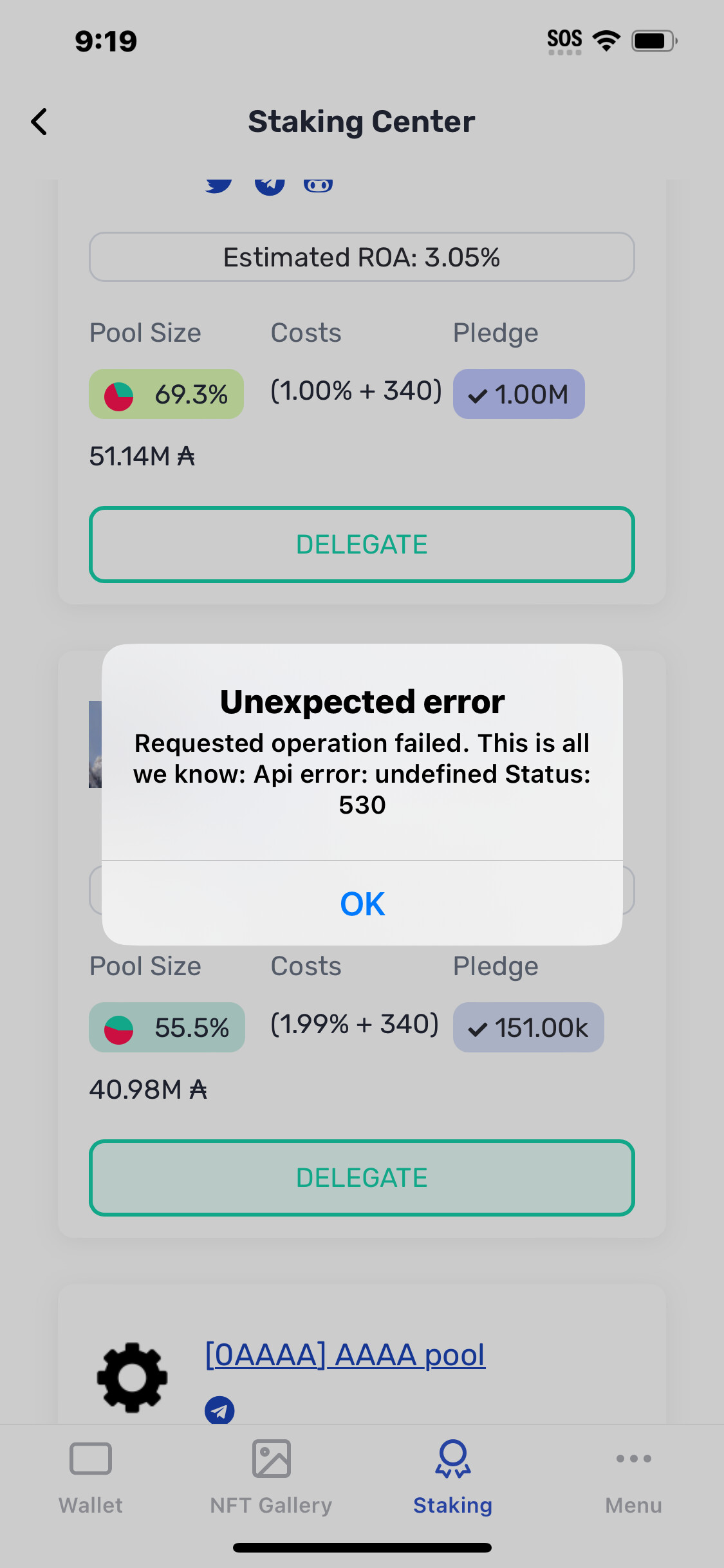 Api error: undefined Status: 530