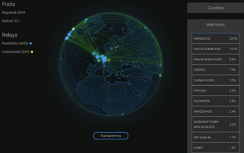 Descentralización Estructural: En relación con el punto anterior, también se da el caso que por cuestiones de relación calidad-precio y servicio, muchos pools optan por grandes compañías de alquiler de infraestructuras. Resultando que actualmente el 23% de los Pools están ubicados en Amazon y el 20% en DigitalOcean (fuente adatools.io). Esto supone un alto riesgo ante ataques o desastres (último caso de incendio en OVH) en esos proveedores y dependencia de toda la red de unos pocos proveedores. Podemos imaginar como un grave problema en, por ejemplo, DigitalOcean que inhabilite sus Pools, provocaría la caida del 20% de los Pools de la red de Cardano de un plumazo. Esta es otra dependencia que podemos intentar evitar mediante nuestra elección en el Pool en el que delegamos. Para saber donde se aloja un Pool, lo más sencillo es que preguntes directamente al Operador del Pool en qué infraestructura está ubicado su Pool e intenta optar por los que no hagan uso de esas grandes empresas de servidores. De hecho, como curiosidad hay muchos Pools que están ubicados en las oficinas o viviendas de los propios Operadores, es decir, la red no necesita de grandes empresas para poder mantenerse y operar. Sólo necesita del buen trabajo del Operador, un hardware adecuado y una buena conexión a internet con suficiente ancho de banda y estabilidad.