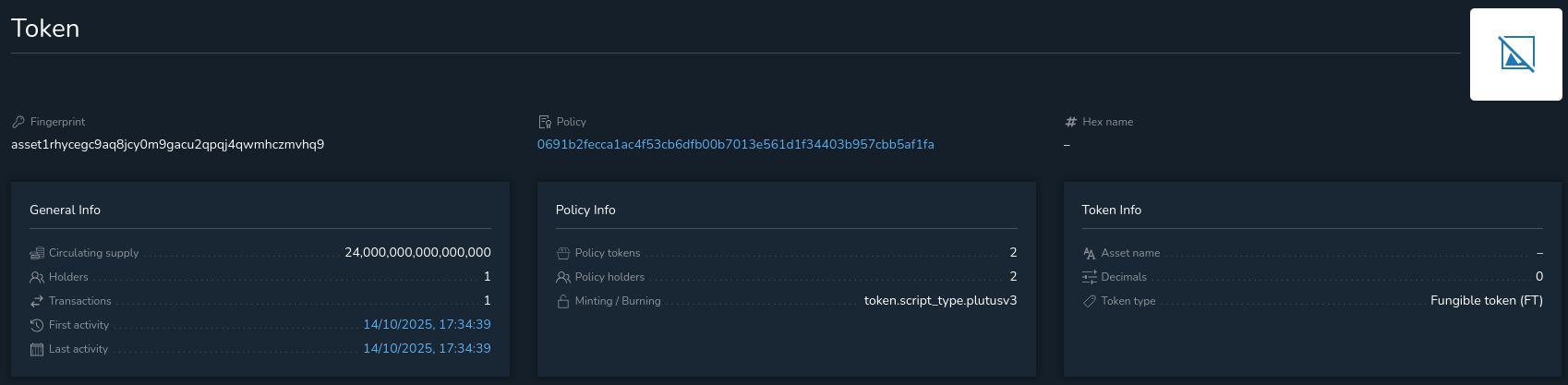 But that token – policy ID 0691b2fecca1ac4f53cb6dfb00b7013e561d1f34403b957cbb5af1fa and asset name 4e49474854 (“NIGHT”) – does not exist: https://adastat.net/policies/0691b2fecca1ac4f53cb6dfb00b7013e561d1f34403b957cbb5af1fa