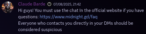 In any case, users were, of course, roaming the Midnight Discord and all Cardano forums, anyway, easy prey for all kinds of scammers. So much that the Cardano Telegram group and this forum had to introduce standard messages redirecting people to the proper channels: