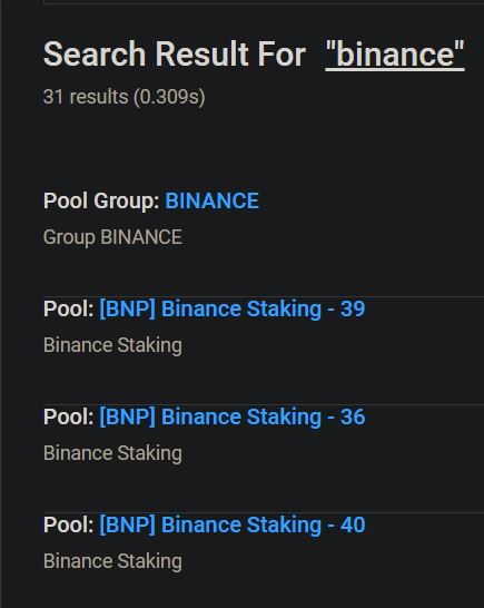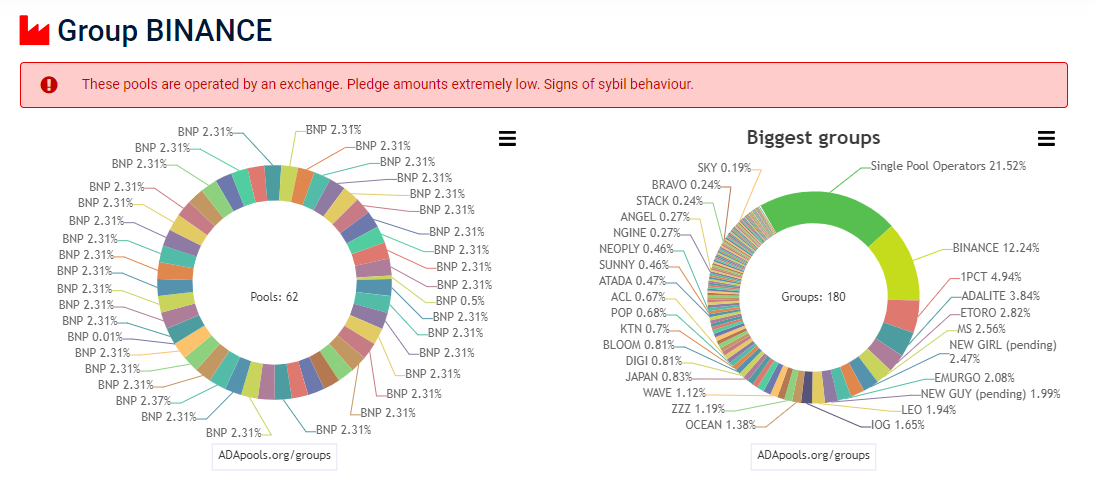 Over 30 pools that belongs to binance with more than 65 m live stake and Pledge almost 2 ada